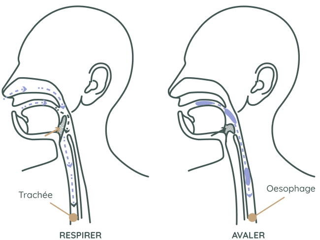 La déglutition est une opération complexe destinée à assurer que la nourriture, les liquides et la salive passent rapidement de la bouche à l’estomac tout en maintenant les voies respiratoires protégées. Si le déroulement de la déglutition est perturbé et si de la nourriture ou de la salive pénètre inconsciemment et de façon incontrôlée dans les poumons, des complications peuvent se produire sous forme de pneumonie.